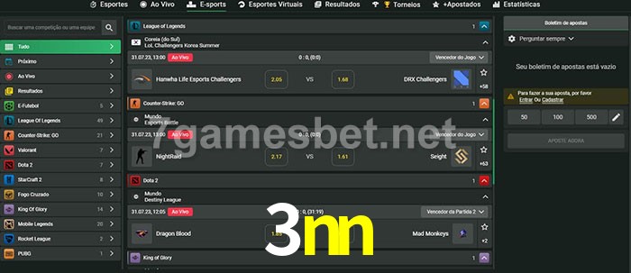 A aposta 3nn oferece aos jogadores a experiência mais conveniente de apostas em eSports!
